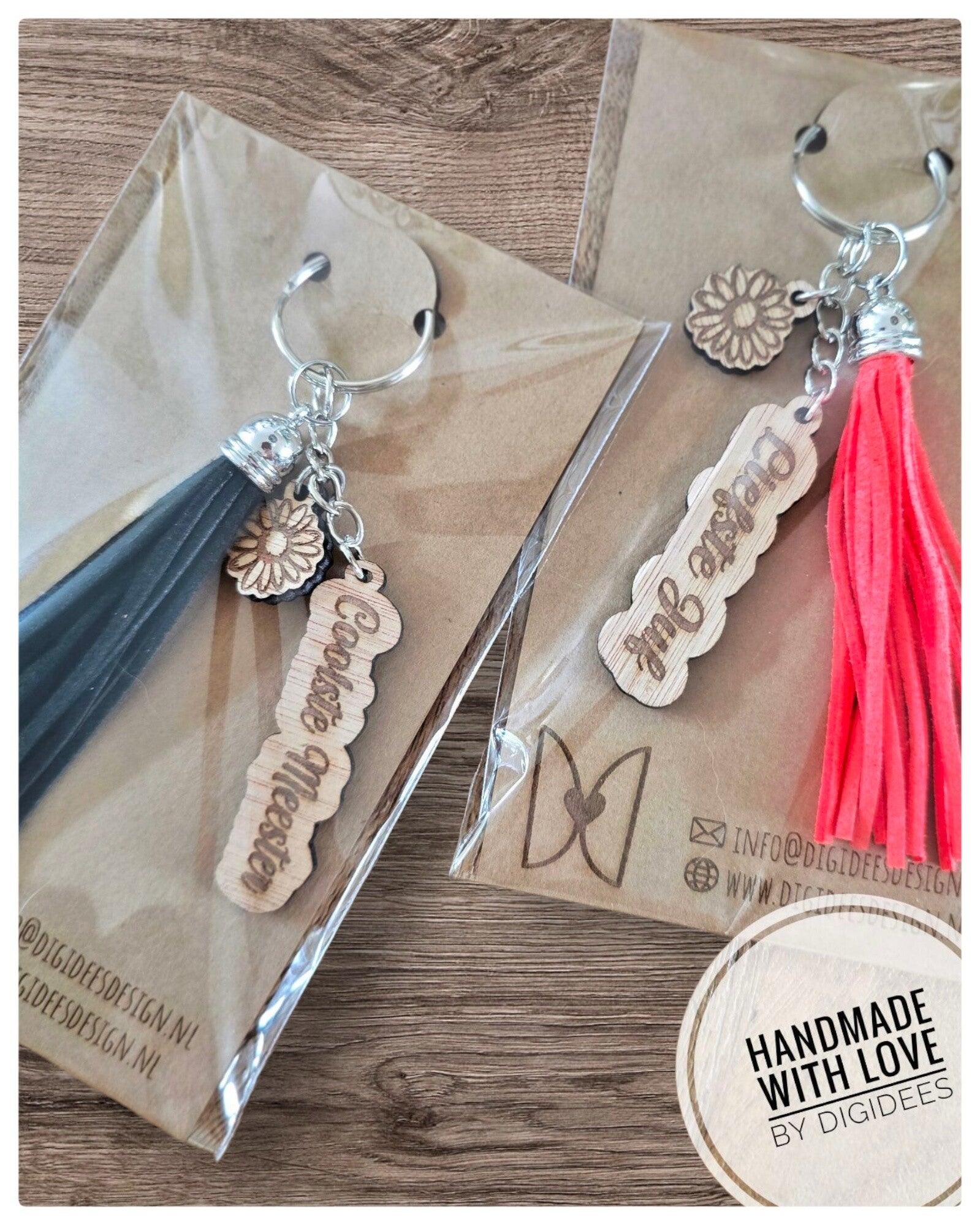 Op zoek naar een origineel cadeau voor een juf of meester? Deze handgemaakte houten sleutelhanger is een perfect bedankje, klein gebaar of verrassing – geschikt voor elk moment in het schooljaar.